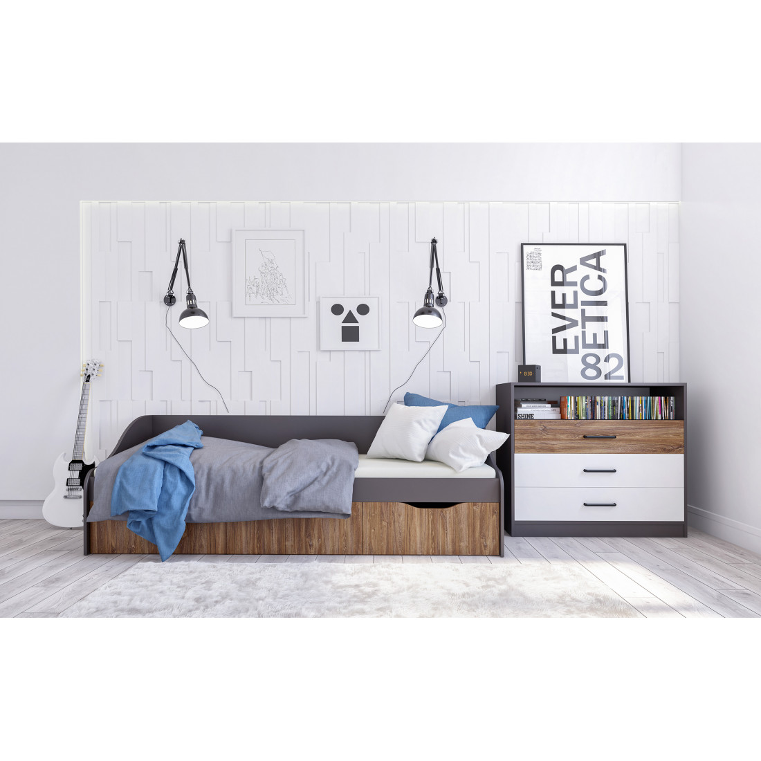 Коллекция Мальма для молодежной комнаты создана, исходя из последних веяний минимализма, которые так ценят люди, идущие в ногу со временем.