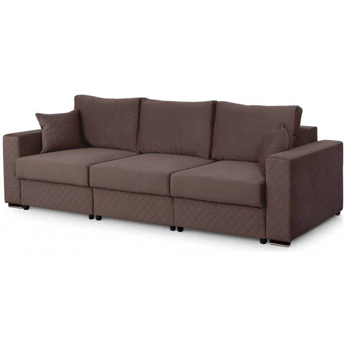 Диван может трансформироваться в угловой левый диван, угловой правый и П-образный диван. Это дает возможность его разнообразного использования. Малые декоративные подушки входят в комплект дивана.