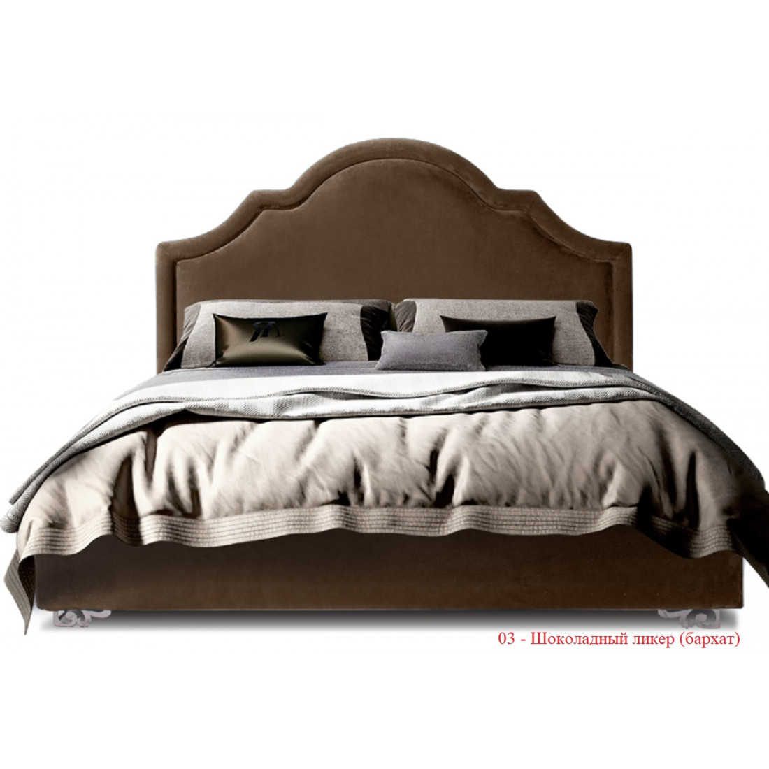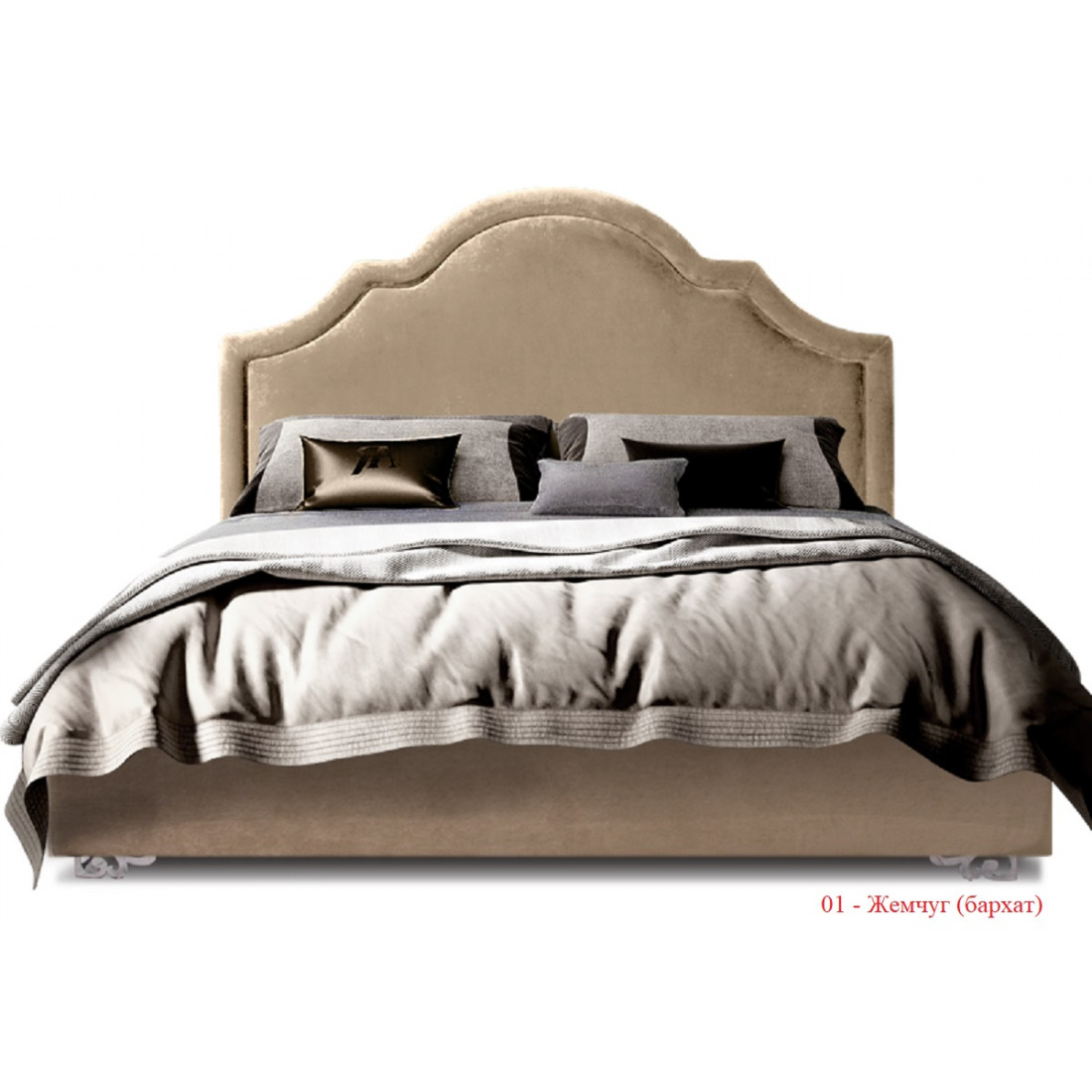 Бархатная ткань очень удачно смотрится на этой модели, придает ей особый лоск и шарм. Данная модель имеет классическое, высокое изголовье (1370 мм) с объемным, декоративным бортиком. Чехол на царги поставляется уже в сшитом и готовом виде. Его достаточно одеть и закрепить на липких лентах. Сами царги мягкие.Кровать «Queen» будет прекрасно смотреться в классическом интерьере, удачно сочетаться с отдельными предметами мебели, благодаря симметричным и плавным линиям в изголовье, «благородному» бархату, который используется для обивки кровати, золотым или серебряным металлическим ножкам, которые отсылают нас к эпохе торжества стиля барокко.