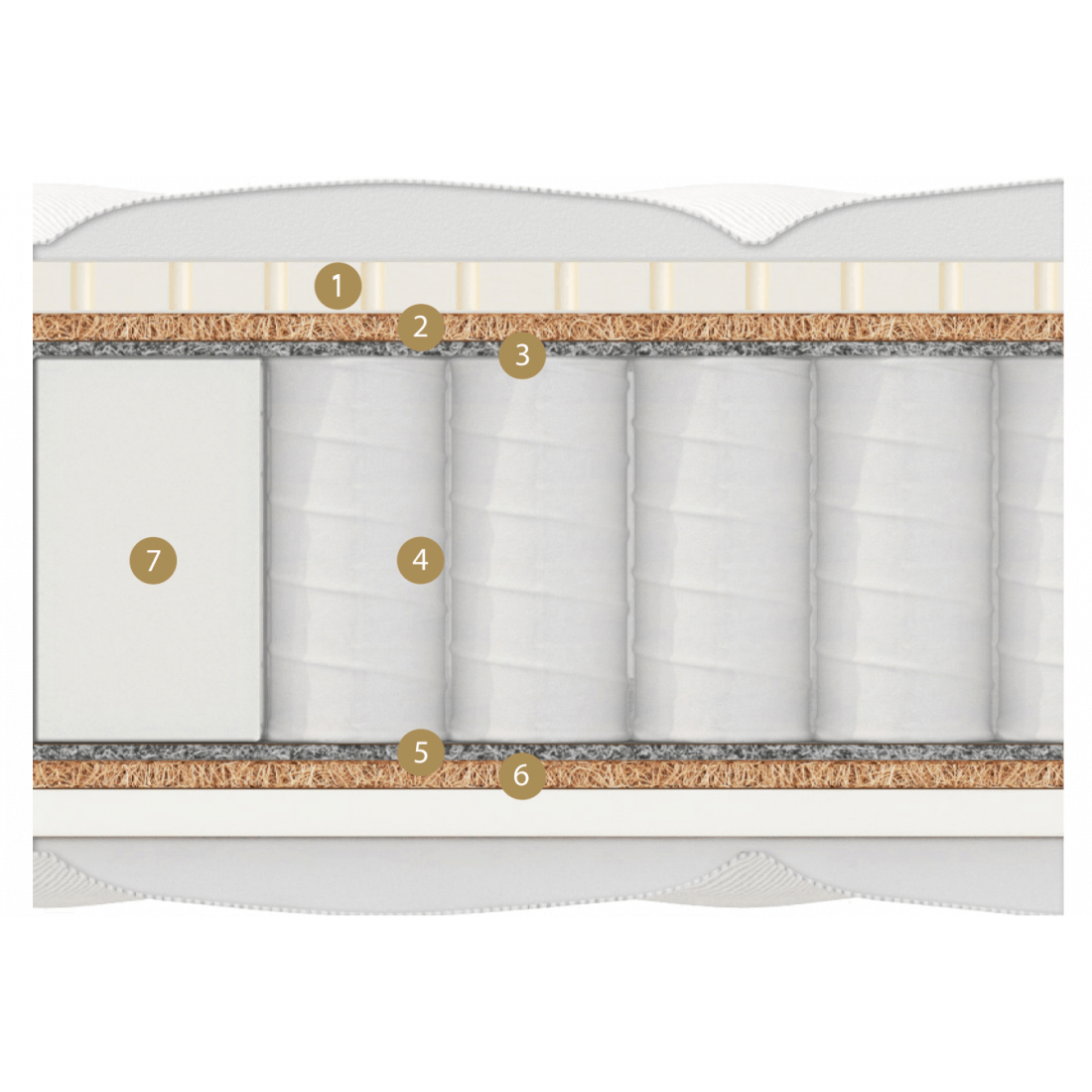 Вторая сторона ощущается как средней жесткости и укомплектована эластичной универсальной пеной natural foam (аналог натурального латекса, имеет хорошие восстанавливающие) и плотного латексированного кокоса с термофиксированным фетром.