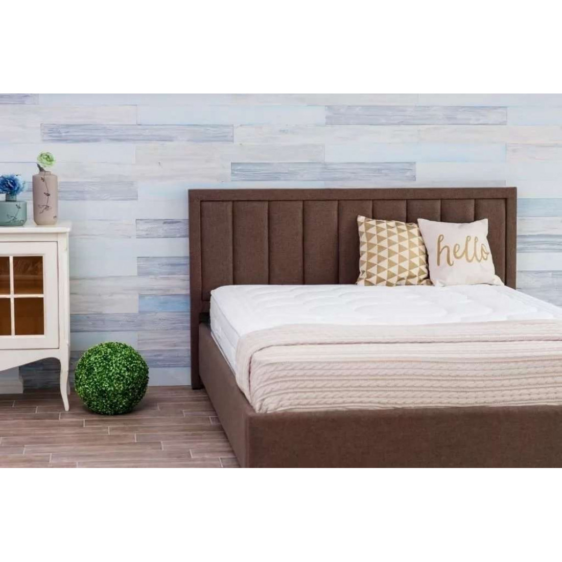 Кровать оснащена встроенным основанием для матраса — прямыми ламелями из березовой фанеры.