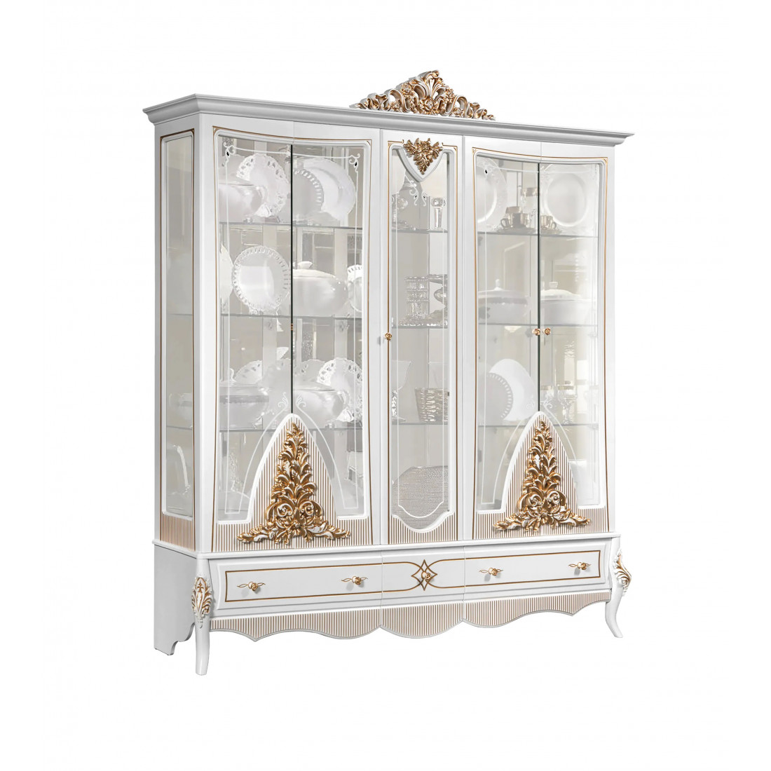 Витрина 2-х дверная в гостиную Стелла (белый золото)