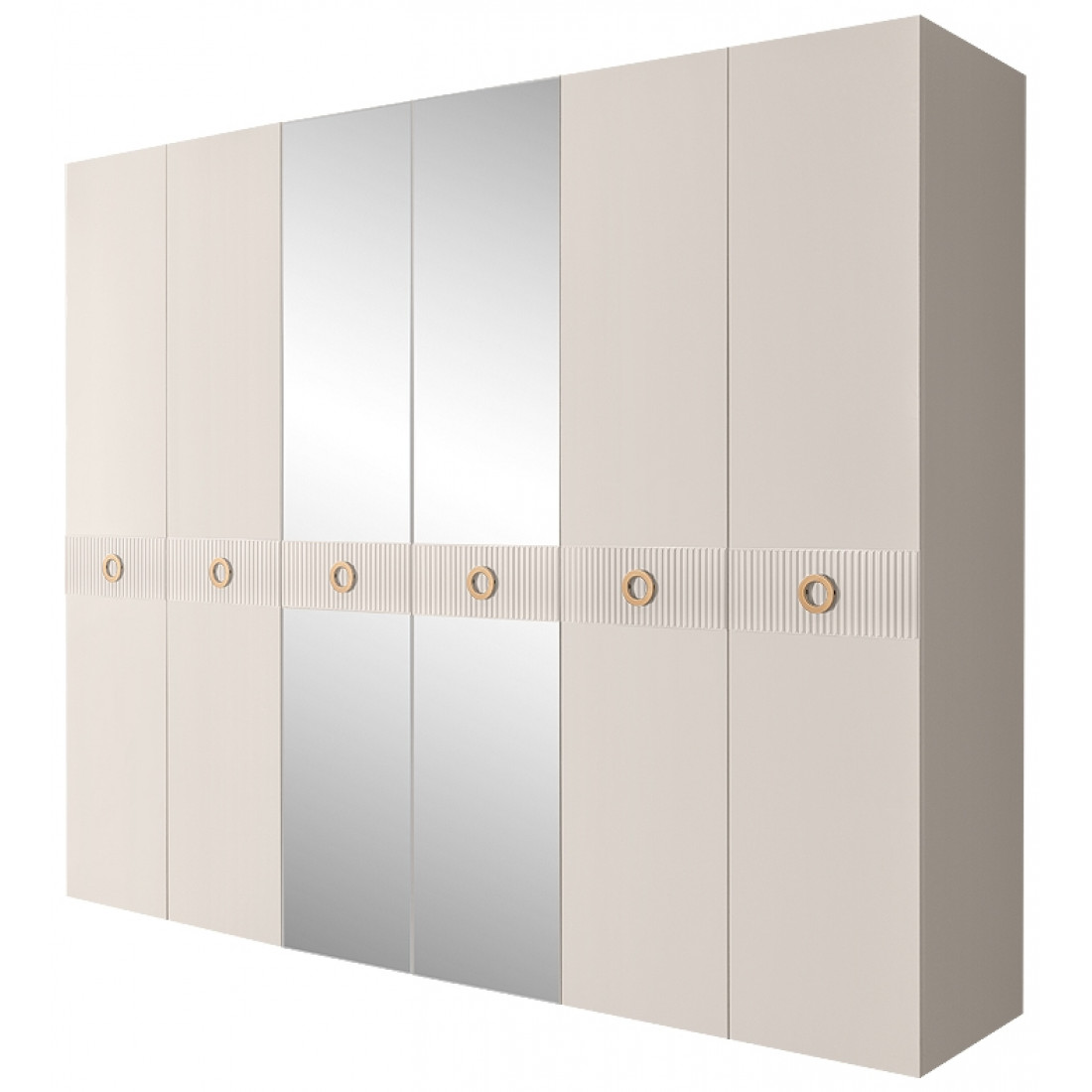 Шестистворчатый шкаф для одежды с зеркалом Rimini РМШ1/6 (латте)