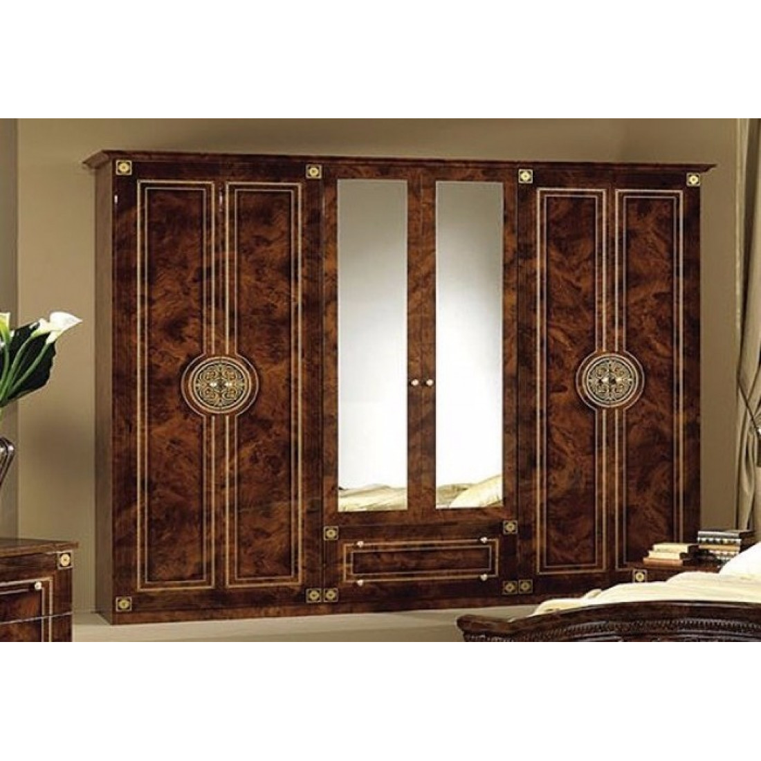 Шестистворчатый шкаф Рома (орех) от Российской фабрики «ДИА мебель» выполнен в строгом, классическом стиле. Ореховый цвет в сочетании с глянцевым покрытием придает элегантность. Такой большой, вместительный шкаф не обходим в спальне, его большие и просторные полки с легкостью поместят весь ваш гардероб. Зеркало по центру шкафа визуально расширит комнату и придаст ей легкость. Вся коллекция "Рома" предназначена только для истинных ценителей элегантного классического стиля.