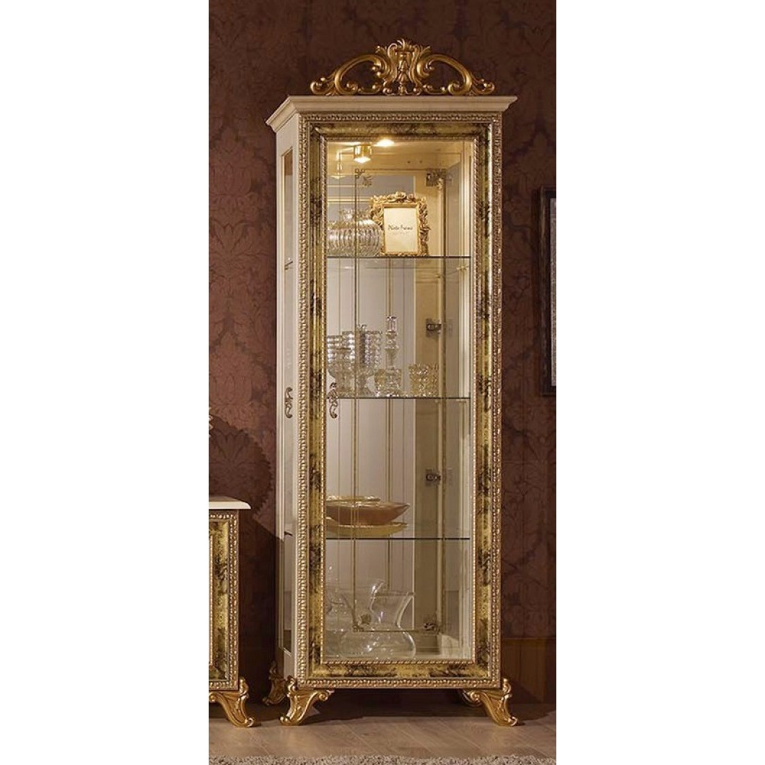 Шкаф-витрина однодверная Катя (беж) - модель выполнена в классическом стиле от Российской фабрики "ДИА мебель". Большие стеклянные полки и корпус из зеркала придаст чувства легкости и визуально поможет расширить пространство комнаты. Выполнена в бежевом цвете с элементами позолоты на фасаде. Такая шкаф-витрина будет не заменима для маленькой гостиной.