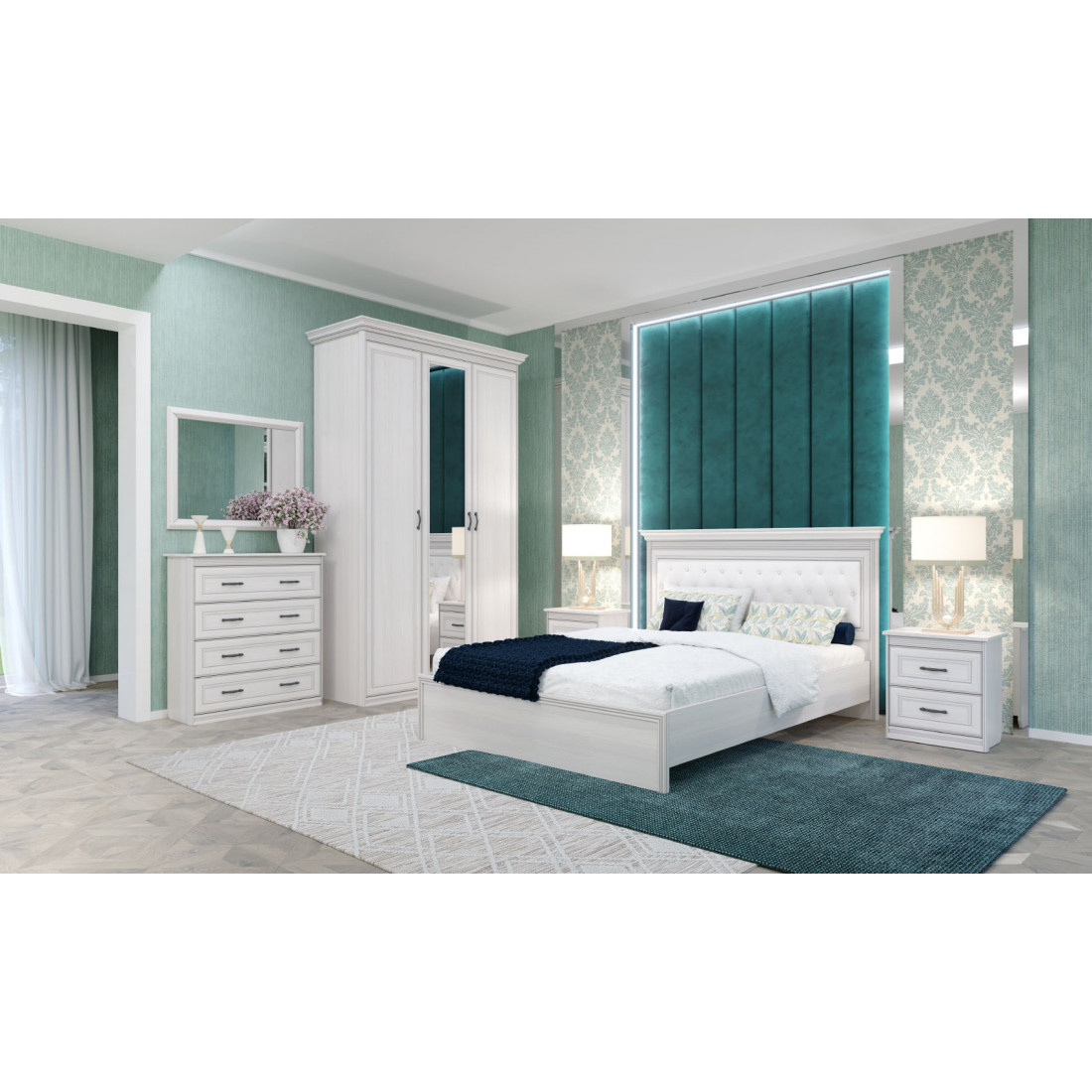 Новинка «Неаполь» - линейка модульной мебели для спальни, в которой черты классического стиля и современного взгляда на интерьер. Коллекция с классическими карнизами, декоративным профилем и изысканной фурнитурой.